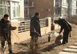 由于“世代龙城”小区区域大、任务重,所以公司员工在早上6:00就拿着劳动工具集合在世代龙城南门。