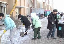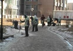 大扫除活动中,大家有的拿大扫帚、有的拿冰铲子、还有的拿着铁锹,一刻不停的挥舞着手中的工具。虽然天气很冷,路面上的积雪和冰硬度非常大,很难清理,但我们的工作人员就这样一锹锹一块块的铲除结冰的路面,很多人手掌都磨出了血泡,其中有保洁员徐秀丽脚伤还未痊愈,但她仍一瘸一拐的在大扫除中劳动着,这种勤劳朴实、爱岗敬业的精神让我们所有工作人员都不禁感动!由于劳动强度大,大家就轮班换着干。扫帚飞舞,铁锹翻飞,除雪工作紧张有序,忙而不乱的进行着,虽然大家都很累,但看到业主满意的笑容,称赞的话语,大家就心满意足了。这真正体现了万联恒德物业“忠诚守信、敢为人先、团队协作、绝对执行”核心价值观。
