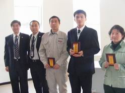 邢总宣布优秀员工获得者 李总和邢总与优秀员工合影